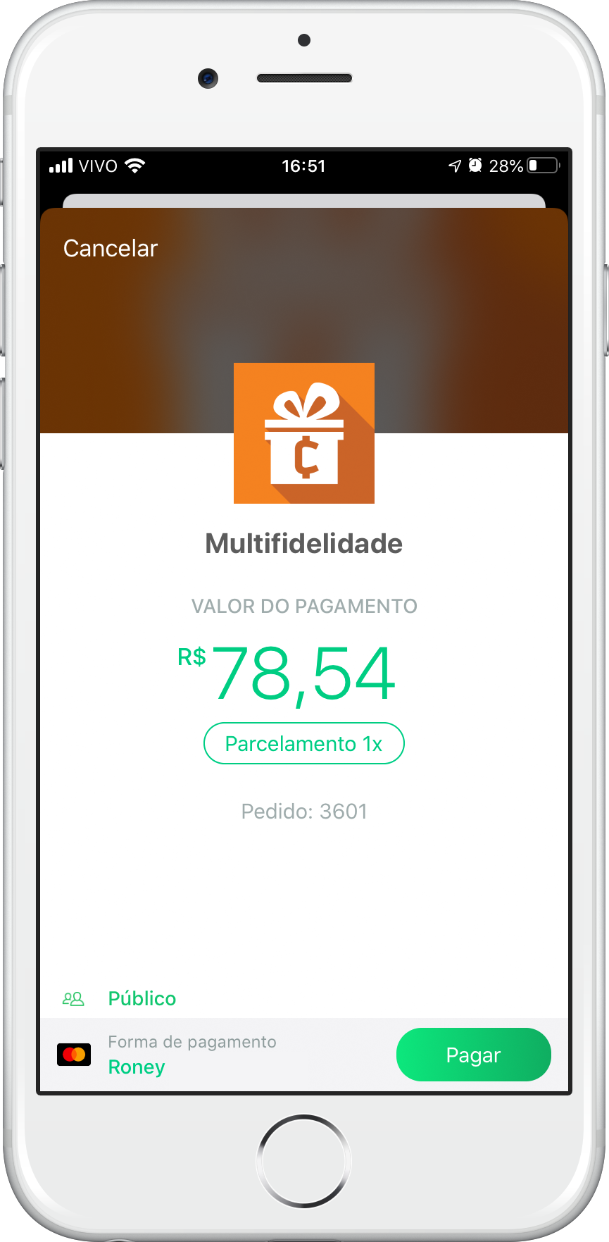 Você pode realizar o pagamento com o saldo em dinheiro ou cartão de crédito cadastrado no PicPay.